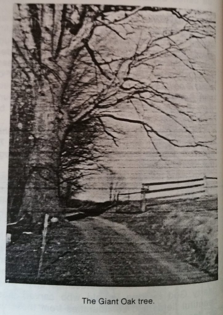 The noble tree was timbered and harvested at the Deanin farm by Woodlands Woodworks in 2016/2017. In fact, it is a red oak, not white, As one of the ancient oak trees of America, the trees rings that are remaining appear to be over 400 years old at a recent counting at approximately the 16 ft mark of the trunk. Accurate counting of the rings remains to be done using segments of the trunk.